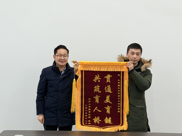 “校地携手美育同行”--------新庐小学教育集团向东华理工大学美术与设计学院赠送锦旗